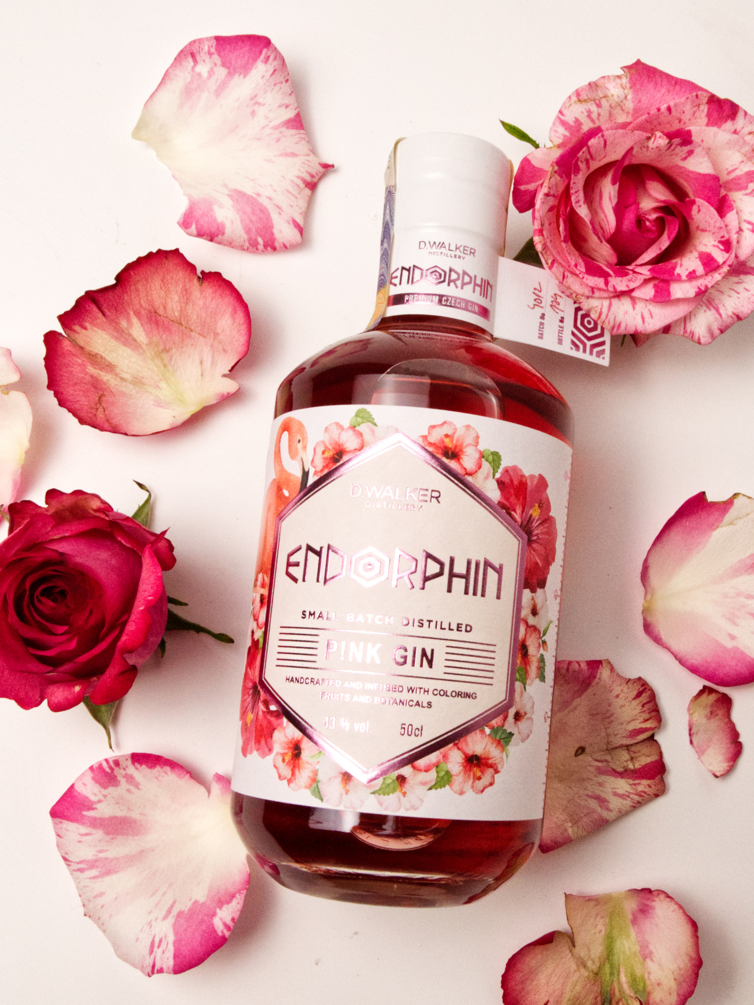 Základem receptury je klasický London dry gin, který je známý svou jemnou a vyváženou chutí. Endorphin Pink Gin však obsahuje navíc infuzovaný růžový extrakt, který mu dodává růžovou barvu a úžasnou vůni.