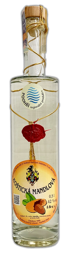 - Koštická mandlová pivovice: Tento destilát je vyroben macerací mandlí, což mu dodává jemné, ořechové tóny s nádechem sladkosti. V chuti se prolínají jemné vanilkové nuance s příjemnou kouřovostí a ovocným závěrem.